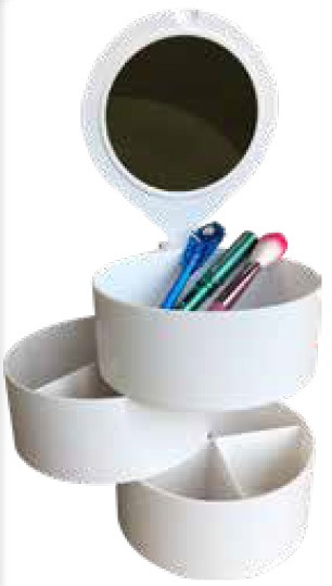 3 TIER COSMETIC ORGANISER WITH LED MIRROR LID